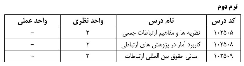 1- مبانی حقوق بین الملل و ارتباطات پنجشنبه ساعت 7.50 الی 10.25